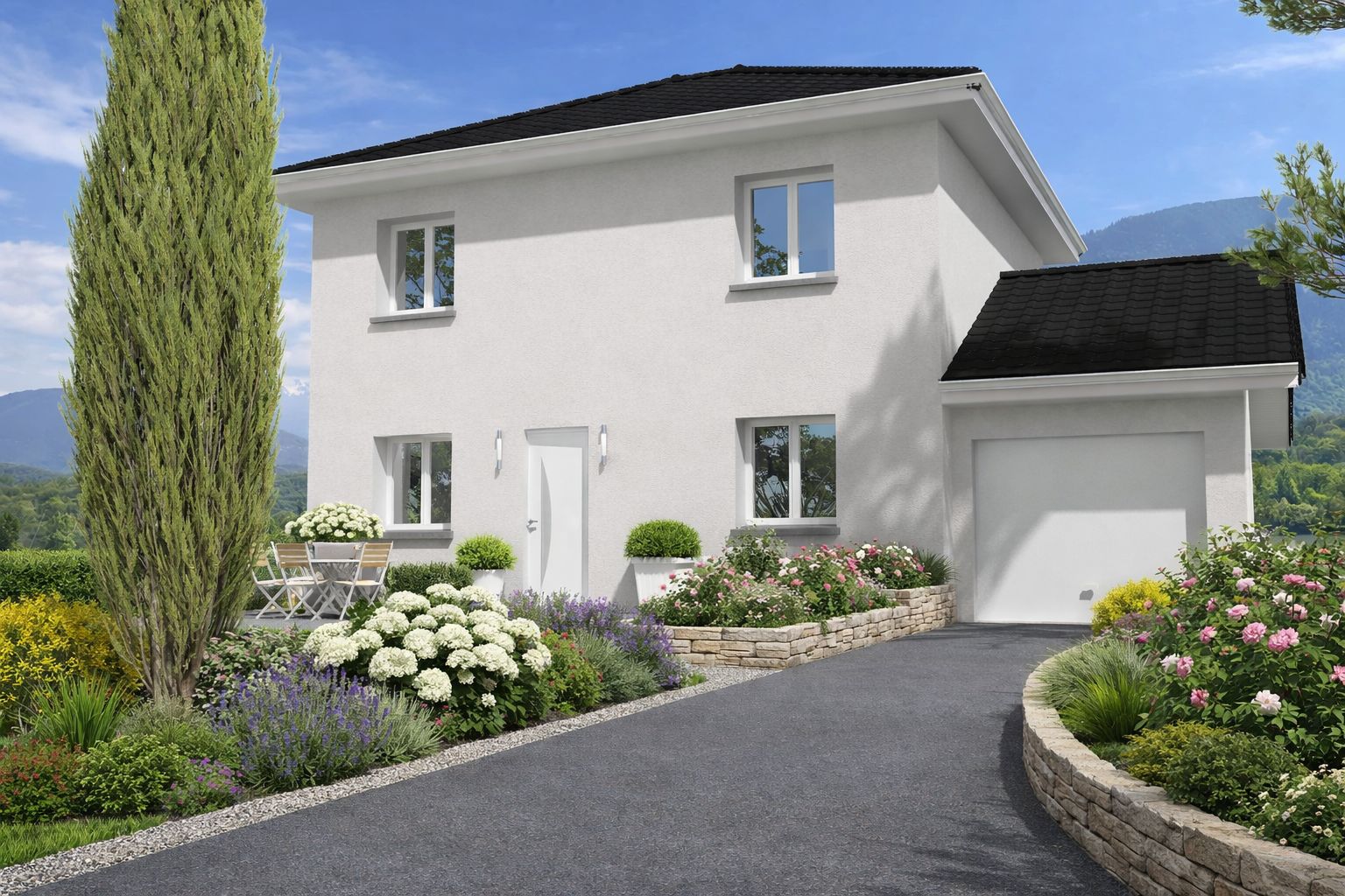 Contrat CCMI. Le prix comprend le terrain et la construction conforme à notre descriptif, les garanties et assurances obligatoires. Hors : Revêtements de sol dans les chambres et peintures intérieures. Sauf mentions contraires dans le descriptif du projet.